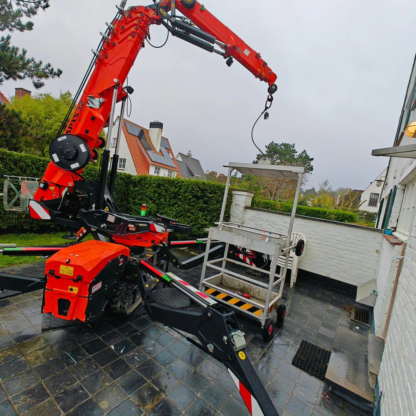 De Jekko SPX532 is een compacte en veelzijdige spinkraan die uitblinkt in precisie en wendbaarheid. Dankzij zijn slanke ontwerp past hij moeiteloos door smalle doorgangen, zoals standaarddeuren en poorten, wat hem ideaal maakt voor werk in krappe ruimtes waar traditionele kranen niet kunnen komen. Ondanks zijn compacte formaat heeft deze kraan een indrukwekkend hefvermogen en een uitschuifbare giek, waardoor hij zware lasten met uiterste precisie kan verplaatsen.